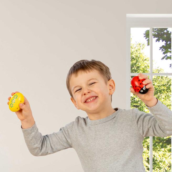 Die witzigen Motive und kräftigen Farben motivieren die Kinder dazu, mithilfe der Rassel-Eier ihr Takt- und Rhythmusgefühl zu entdecken. Auch die angenehme Haptik macht die hölzernen Rassel-Eier zu einem ansprechenden Sensorik-Spielzeug zur musikalischen Früherziehung. Ab 3 Jahren.