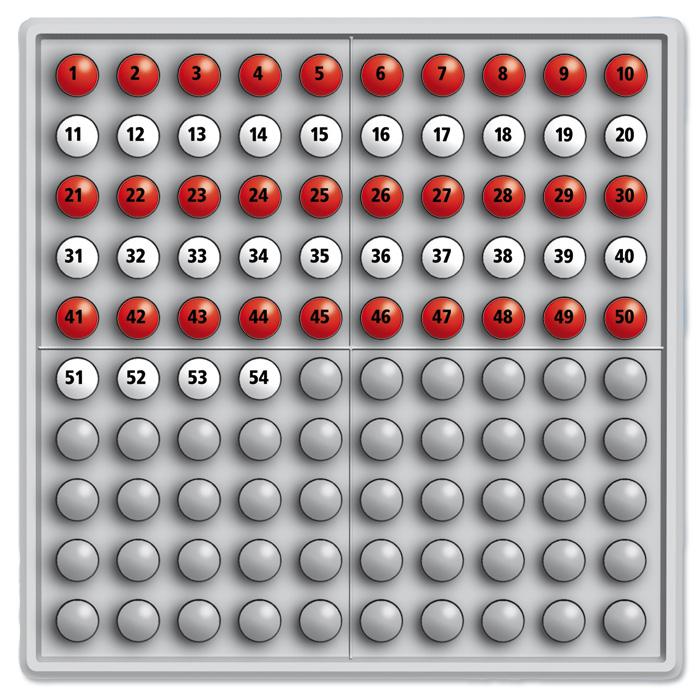Die aufgedruckten Zahlen ermöglichen zudem viele weitere Rechenoperationen: Zahlen benennen und finden, Zahlenreihen, gerade und ungerade Zahlen, Vorgänger und Nachfolg, usw.
