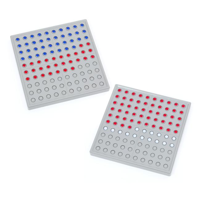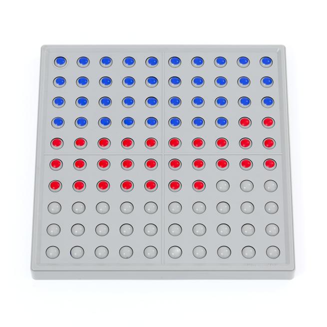 Drei bis vier SuS arbeiten mit dem Abaco und zählen, ergänzen, vergleichen bzw. veranschaulichen im Zahlenraum bis 100, wie sie addieren und subtrahieren. Mit drehbaren roten, blauen und grauen Kugeln. Optimal zur Selbstkontrolle.