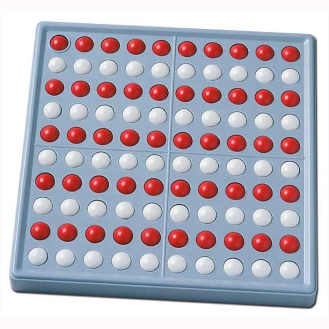 Jede der 100 Kugeln hat eine bunte und eine graue Seite. Ausgehend von der grauen Seite werden nun die benötigten Kugeln umgedreht und erscheinen in Farbe. Dem Schüler wird sehr schön deutlich, welche Kugeln für die Aufgaben eine Rolle spielen. Alle Rechenoperationen im Zahlenraum bis 100 werden anschaulich dargestellt. Mit Anleitung.