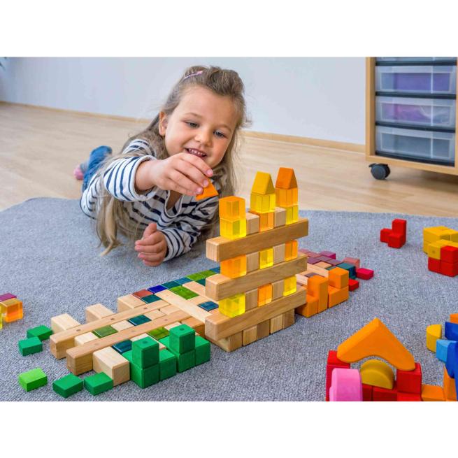 Farbwahrnehmung anschaulich erfahren. Erklären Sie Ihren Kindern doch z. B. mal am Leuchttisch, welche Farben gut miteinander harmonieren. Nutzen Sie dazu diese Acryl-Bausteine. Die 100 Steine in 10 strahlenden Farben fühlen sich angenehm an und liegen gut in der Hand. Bauwerke bekommen durch diese Steine einen schicken Farbglanz. Im praktischen Holzkasten sind sie bestens aufbewahrt.