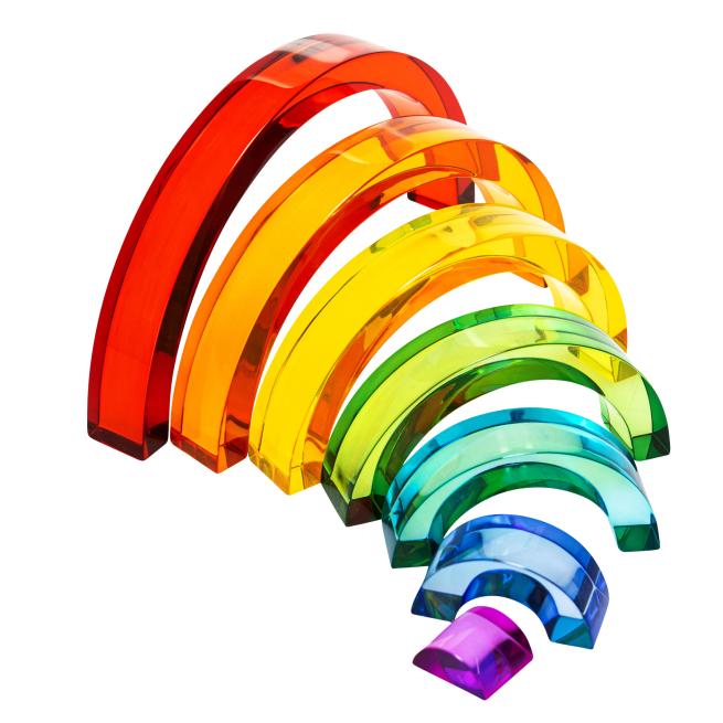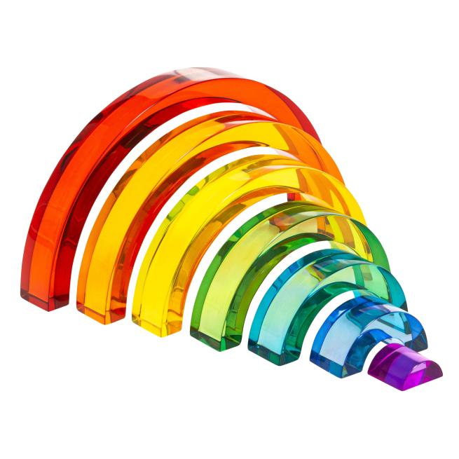 Set aus 7 transluzenten Bogen-Elementen aus Acryl in leuchtenden Farben. Alle Teile sind robust und griffig. Sie lassen sich stapeln, zu Tunneln zusammensetzen oder kreativ mit anderen Bausteinen und Spielmaterialien (nicht enthalten) kombinieren. Es entstehen zahllose reizvolle Lichteffekte, Lichtbrechungen und immer wieder neue Farbtöne. Ebenfalls perfekt geeignet für faszinierende Experimente auf dem Leuchttisch.
