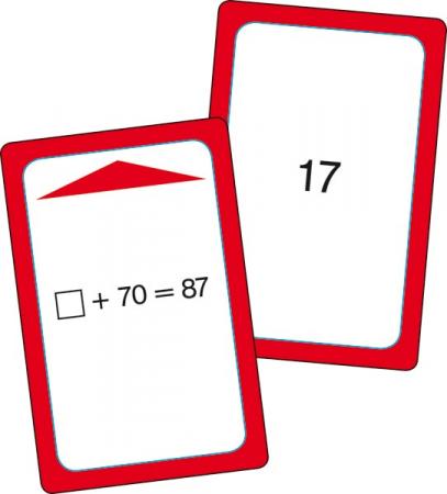 Die Kinder sehen auf jeder Karte eine Aufgabe. Sie nennen das Ergebnis und werfen die Karte in den Schacht.
