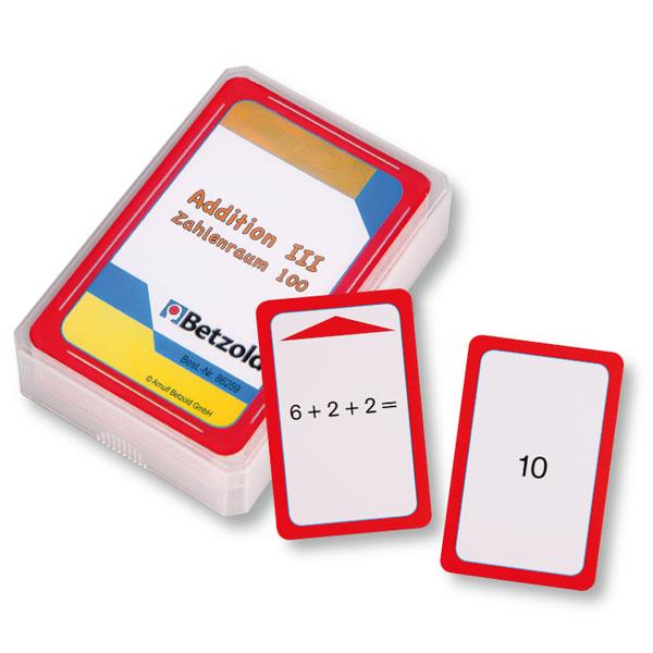 Die Kinder sehen auf jeder Karte eine Aufgabe. Sie nennen das Ergebnis und werfen die Karte in den Schacht.