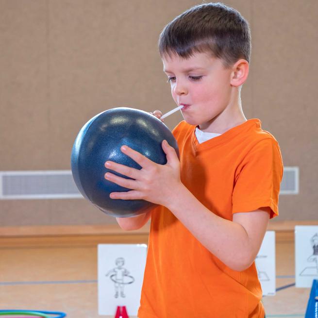 Der aufblasbare Ball eignet sich für alle Ballsportarten, selbst für Wasserspiele. Ein Mundstück zum Aufblasen gehört zum Lieferumfang. Farbe: Blau