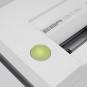 Die Gerätefunktionen – Stand-by/Stopp (Aus)/Rückwärts – sowie die Betriebssignale regeln Sie komfortabel per Easy Touch über einen einfachen Multifunktionsschalter. Zur erhöhten Produktsicherheit und zum Schutz von Fingern, langen Haaren und langen Kleidungsstücken ist der Aktenvernichter vor der Zufuhröffnung standardmäßig mit einer Schutzklappe ausgestattet. Der großzügige 20-Liter-Auffangbehälter lässt sich im Handumdrehen leeren, indem Sie die Schreddereinheit über die in den Behälter integrierten Griffmulden einfach abheben.