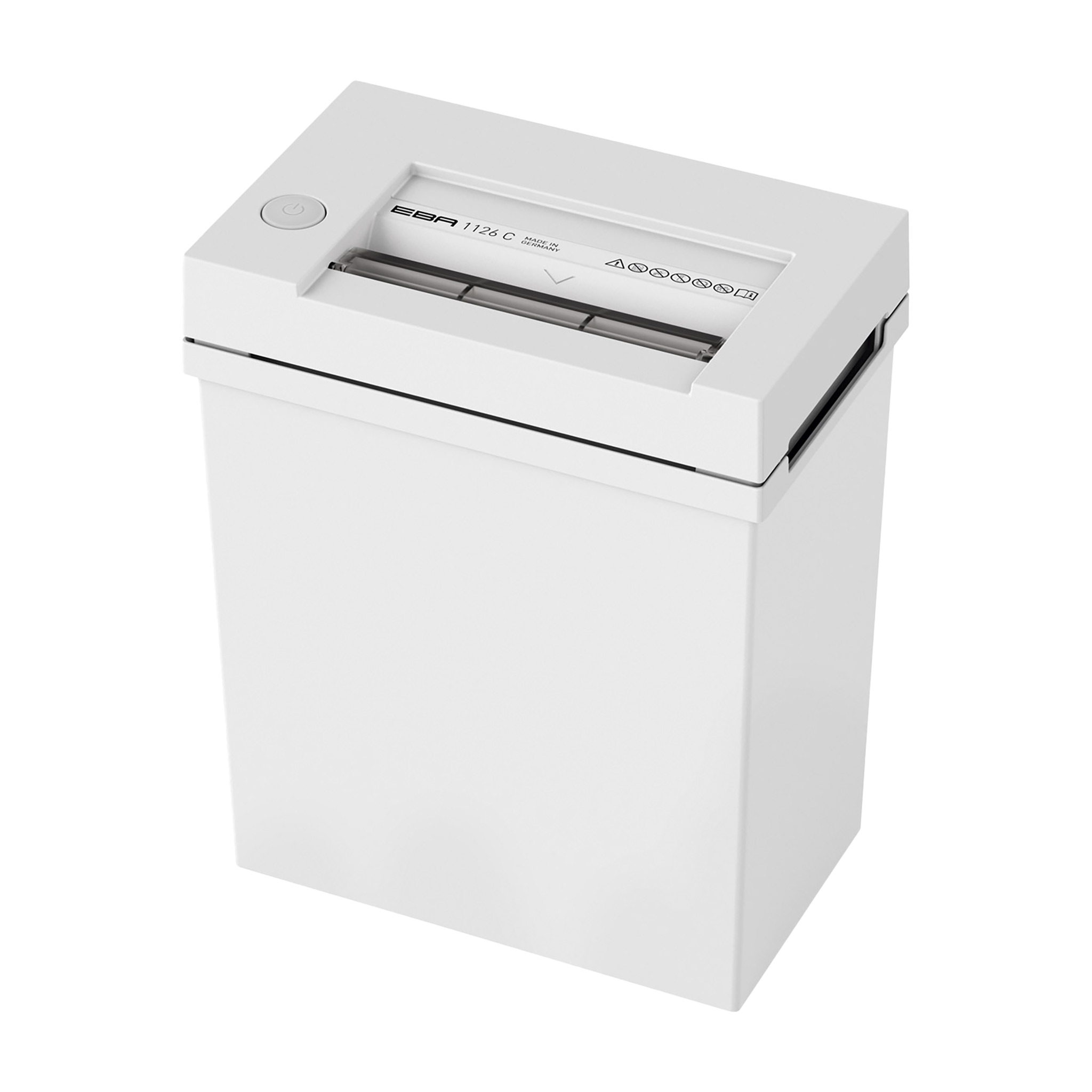 EBA 1126 C: P-5 (2x15 mm Partikelschnitt): Ihre Wahl zur DSGVO- und DIN-66399-konformen Vernichtung von Papierdokumenten bis Sicherheitsstufe P-5 (geheim zu haltende Daten). Arbeitsgeschwindigkeit: 3 – 4 Blatt Normalpapier pro Minute. Auch dieses Modell verfügt über die praktische Abschaltautomatik über Magnetschalter, die sich sofort aktiviert, sobald Sie den Gerätekopf (Schreddereinheit) vom Auffangbehälter herunternehmen.
