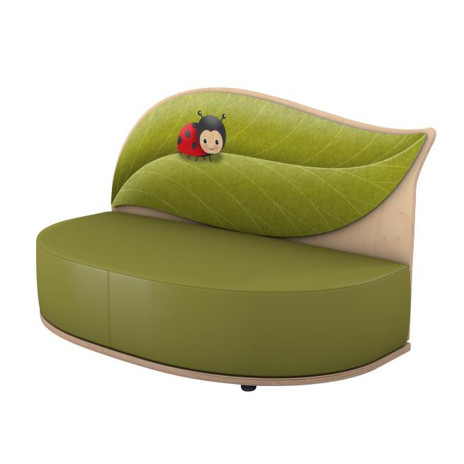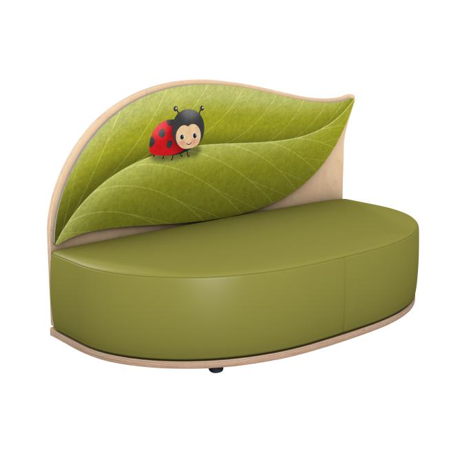 Wie ein Marienkäfer auf einem saftigen grünen Blatt. Das Akustiksofa bietet Ihren Kindern den absoluten Wohlfühlplatz, um in Ruhe ein Buch anzuschauen oder zum Entspannen. Der Clou: Das neue Lieblingssofa hat nicht nur einen stabilen Holzunterbau, sondern die hochgezogene Rückenlehne ist zusätzlich mit einem Akustikmaterial ausgerüstet. Dies schluckt den Schall und reduziert den Geräuschpegel merklich. Zudem bietet der feste Schaumstoff bequemen Sitzkomfort und der phthalatfreie Kunstlederbezug ist besonders hygienisch sowie schwer entflammbar. Teilmontiert.