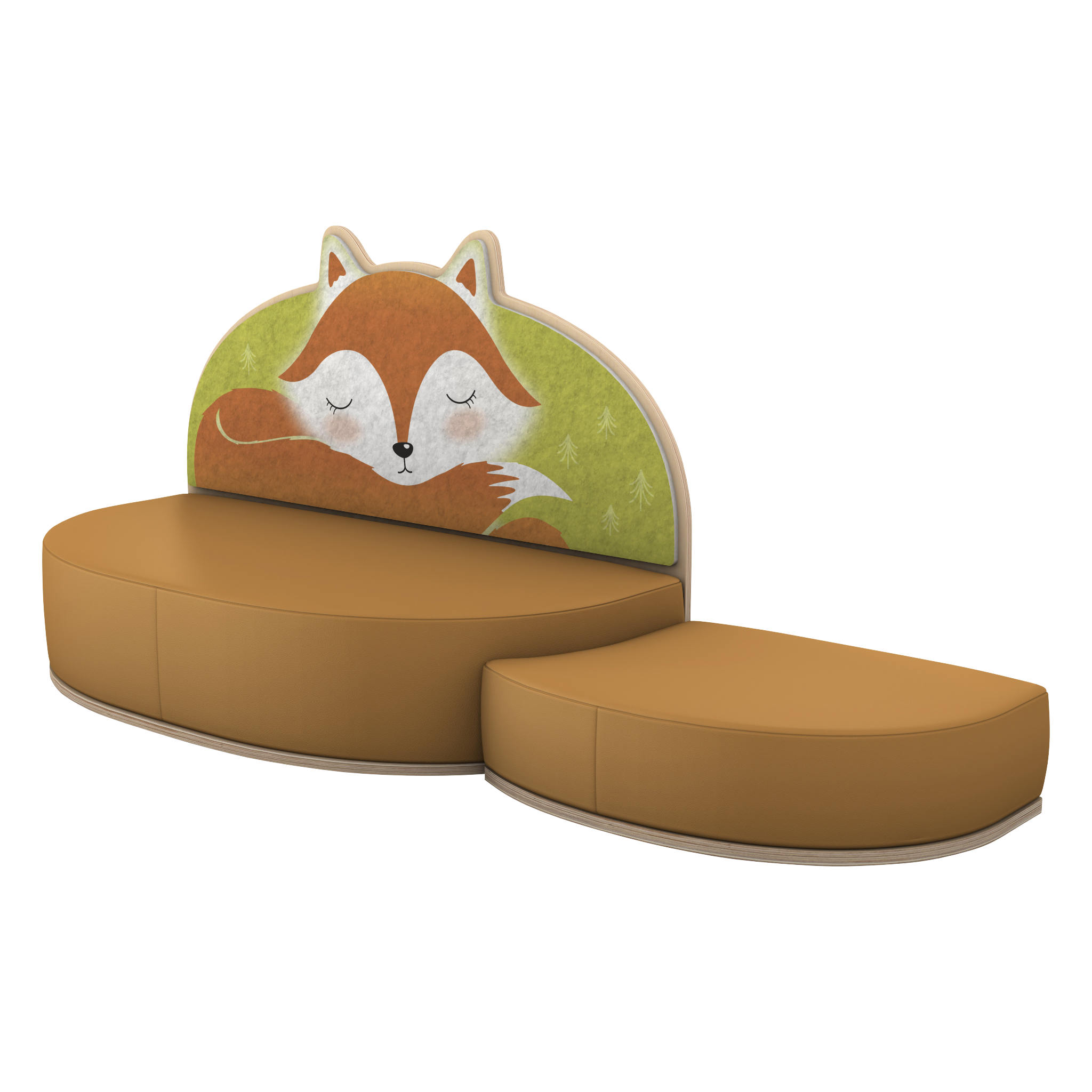Entspannen mit Waldgeflüster. Das Akustiksofa bietet Ihren Kindern den absoluten Wohlfühlplatz, um in Ruhe ein Buch anzuschauen oder zum Entspannen. Der Clou: Das neue Lieblingssofa hat nicht nur einen stabilen Holzunterbau, sondern auch eine hochgezogene Rückenlehne mit Akustikmaterial. Dies schluckt den Schall und reduziert den Geräuschpegel merklich. Zudem bietet der feste Schaumstoff bequemen Sitzkomfort und der phthalatfreie Kunstlederbezug ist besonders hygienisch sowie schwer entflammbar. Teilmontiert.