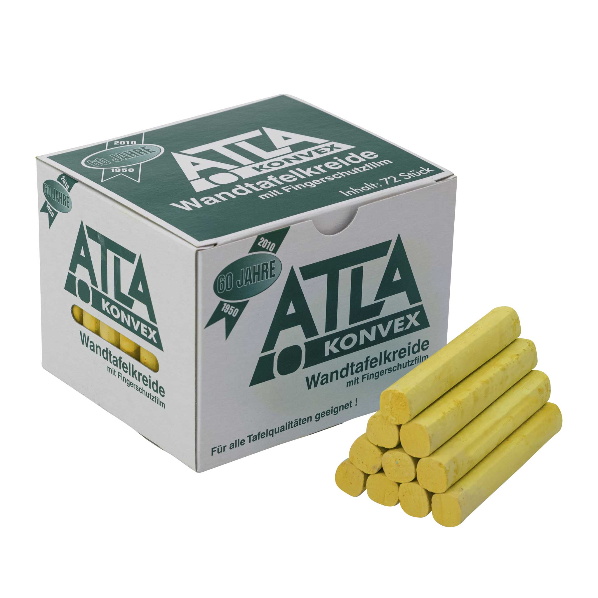 ATLA Schulkreide, 72 Stück, staubfrei, bunt, abgerundete Ecken, Ø 12 mm Gelb