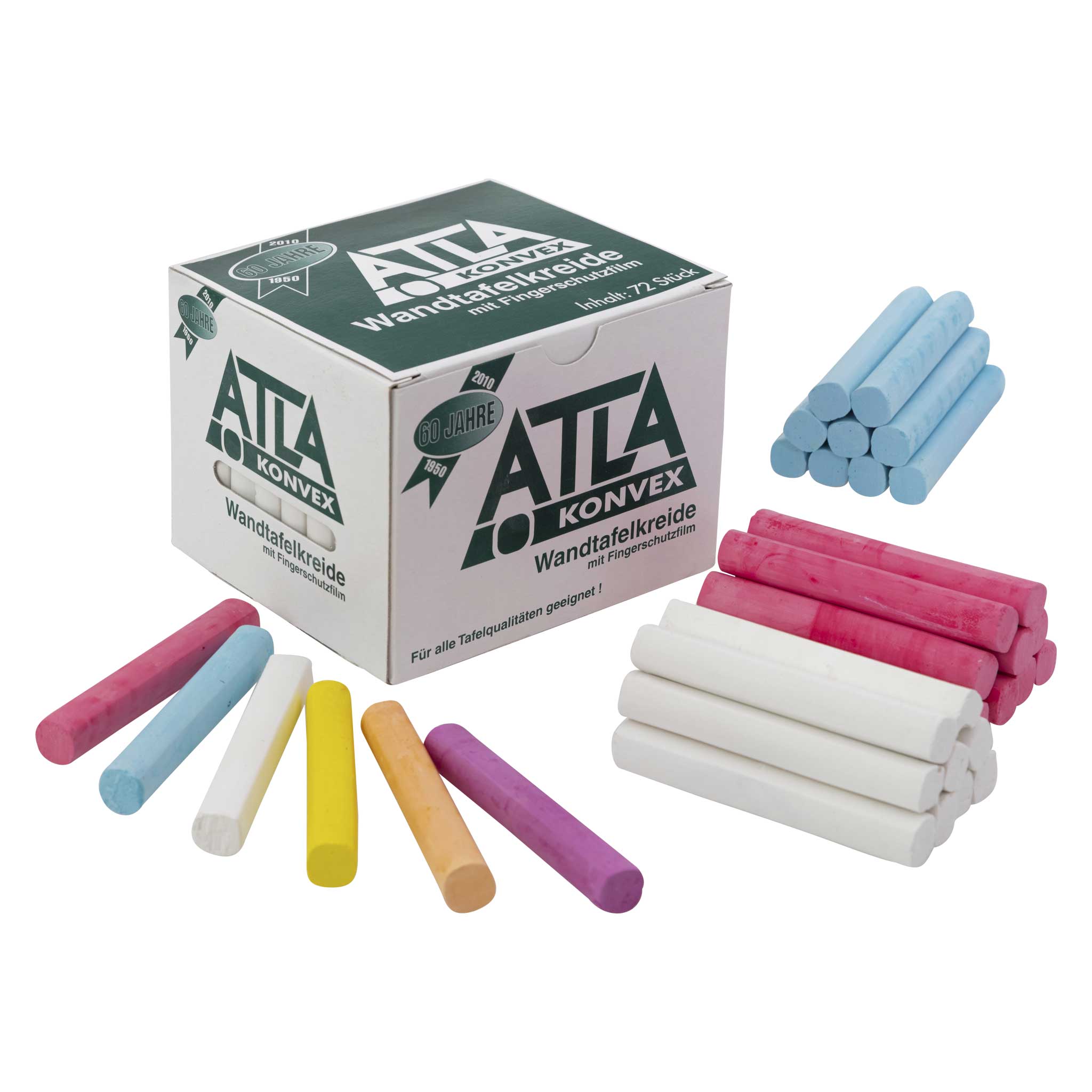 ATLA Schulkreide, 72 Stück, staubfrei, bunt, abgerundete Ecken, Ø 12 mm