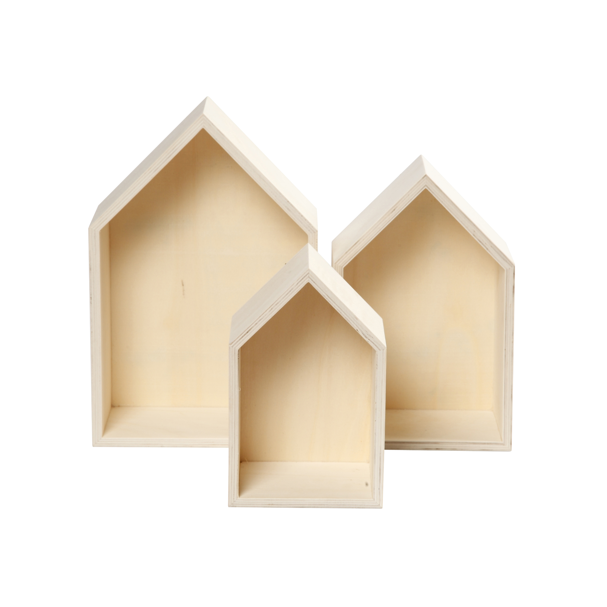• 3 unterschiedlich große Kästen• Hausform für dekorative Wandgestaltung