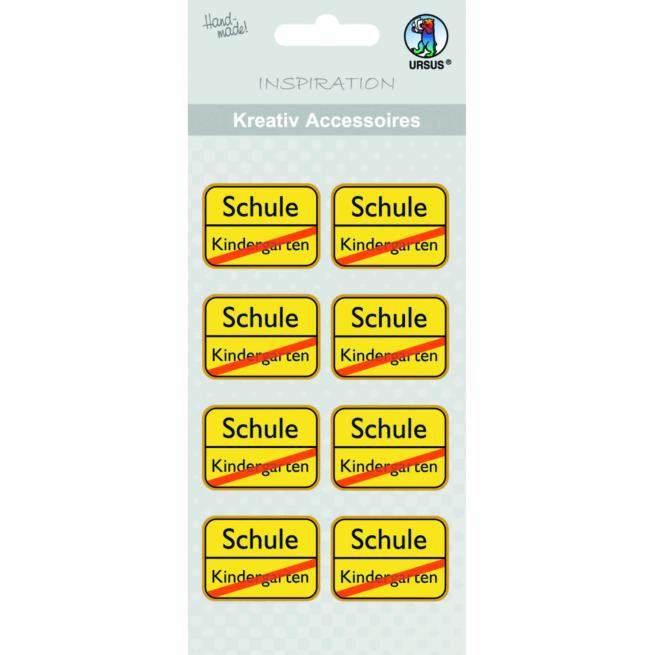 Vom Kindergarten in die Schule: Deutlich machen das die acht selbstklebenden Aufkleber. Eine witzige Dekoidee z. B. für Schultüten oder Einladungskarten zur Einschulung. Jeder Aufkleber ist mit einem Klebepatch versehen.