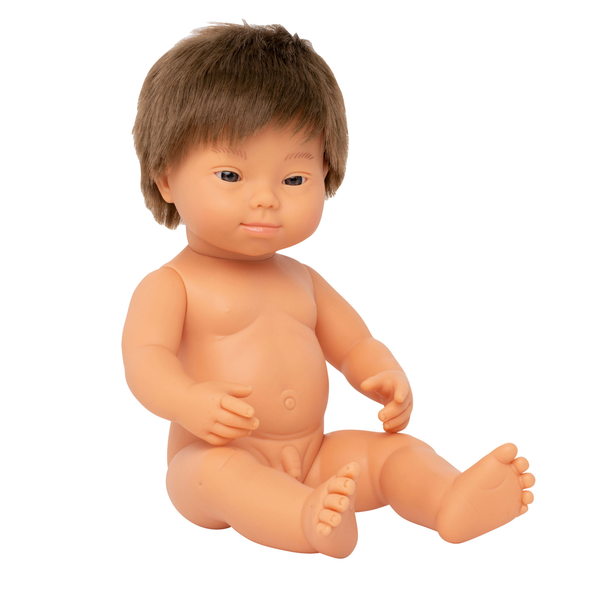 Toleranz und Verständnis für Menschen mit Behinderungen lernen Kinder anschaulich mithilfe der Puppe. Gleichzeitig ermöglicht sie eine selbstverständliche, alltägliche Begegnung mit dem Downsyndrom. Die besonders gestaltete Puppe ermöglicht Kindern einen einfachen Zugang und ermutigt sie, Unterschiede zu akzeptieren und zu schätzen. Dabei lernen sie, wie wichtig Empathie und Inklusion sind, um allen Menschen vorurteilsfrei zu begegnen. Der weiche Puppenköper aus Vinyl duftet leicht nach Vanille. Kopf, Arme und Beine sind beweglich.