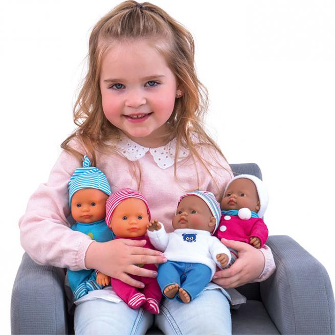 Die jeweils 21 cm großen Puppen sind mit ihren weichen Kunststoffkörpern sehr robust. Ihre Kinder können die Puppen z. B. auch baden.