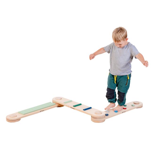 Tipp: Den Balance Parcours können Sie auch mit zusätzlichen Zählsteinen bestellen als schönen und anspornenden Abschluss der Verbindungselemente.