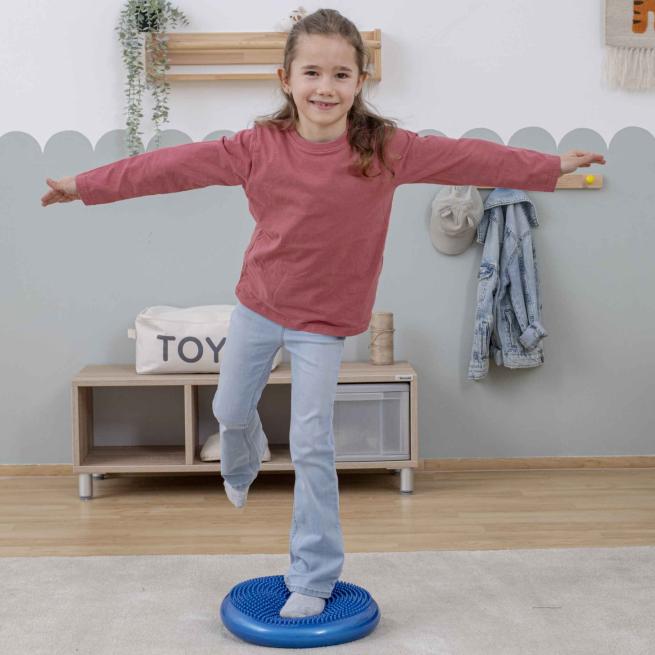 Gleichgewichts-Übungen machen schon den Kleinen Spaß auf diesem luftgefüllten Balancier-Kissen. Ob barfuß auf der genoppten Oberfläche oder als Sitzkissen – die Kinder entwickeln Körpergefühl und verbessern ihre Haltung. Die individuelle Befüllung ermöglicht verschiedene Schwierigkeitsgrade. Besonders praktisch: die passende Ballpumpe liefern wir Ihnen direkt mit dazu.