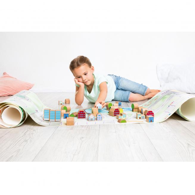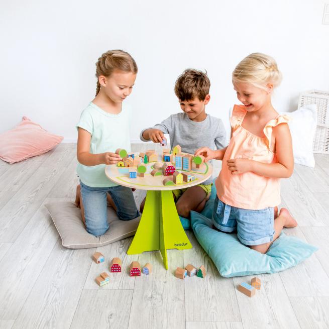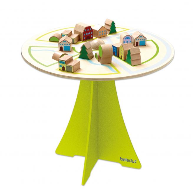 Wer schafft es, die Häuser und Bäume so auf der wackeligen Scheibe anzuordnen, dass kein Teil hinunterfällt? Die Kinder trainieren neben ihrem Farb- und Form-Verständnis, die Gewichtsverteilung abzuschätzen und auch kreativ zusammenzuarbeiten. Für unterschiedliche Spielmöglichkeiten ist die Holzscheibe beidseitig bedruckt. Allein oder in der Gruppe bespielbar.