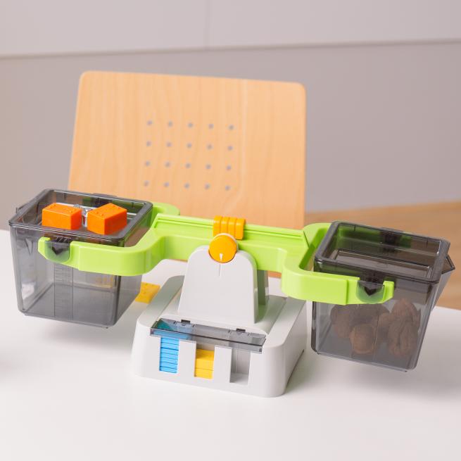 Wiegen leichtgemacht: Mit der stabilen Balkenwaage messen Kinder Zutaten oder verschiedene Materialien ab und entwickeln ihr Verständnis für Mengen, Volumen und Gewichte, die sie an der Skala ablesen. Das Aufwiegen mithilfe der Metall- und Kunststoffgewichte stärkt Fingerspitzengefühl und Konzentration.