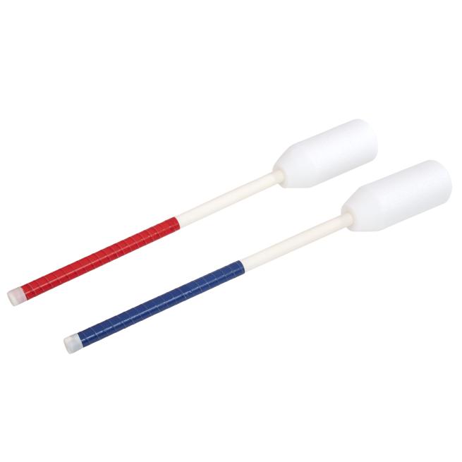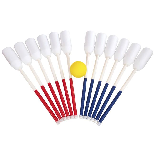 6 Schläger, je 3 mit rotem Griff, 3 mit blauem Griff1 Ball