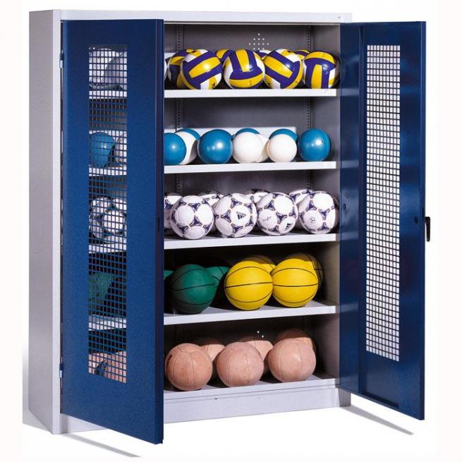 Ballschrank, 195 x 150 x 50 cm, mit Flügeltüren und Lochblech