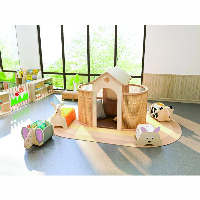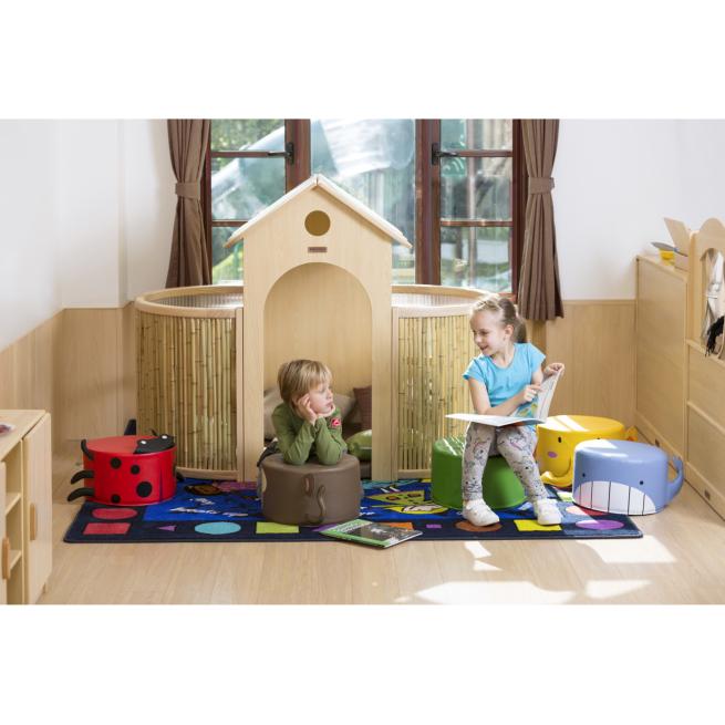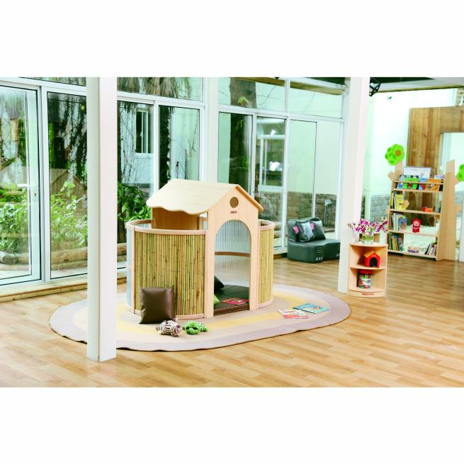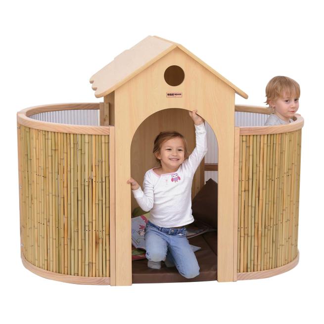 Toller Indoor-Unterschlupf mit Dach und überschaubaren Bambus-Seitenwänden. Rückseitig ist die Bambusabdeckung mit Kunststoff verkleidet, wodurch genug Licht ins Innere fällt. Da die Kinder über die Seitenteile schauen können, nutzen sie das Spielhaus z. B. als Ausguck. Inklusive Bodenmatte. Ab 18 Monaten.
