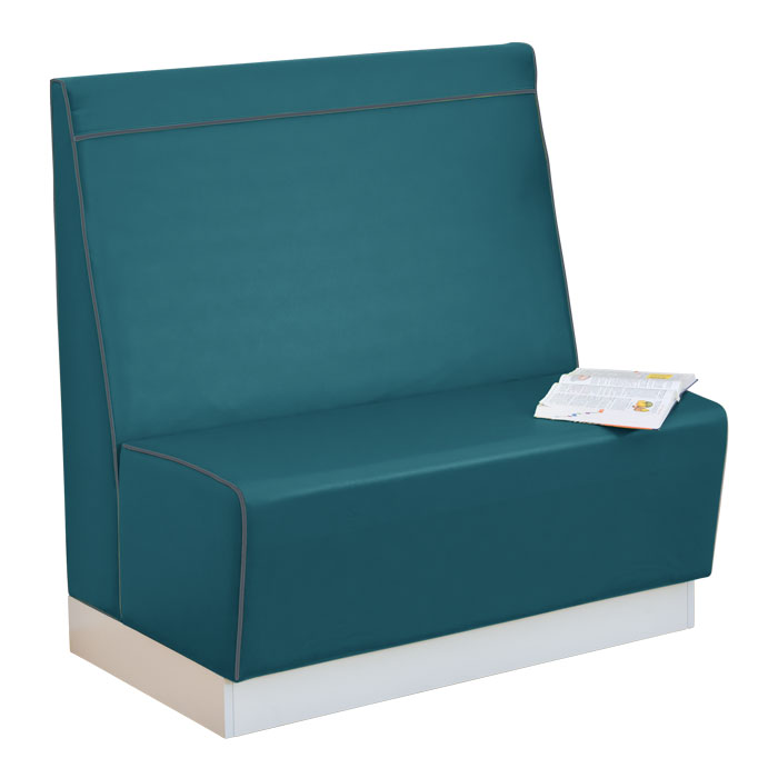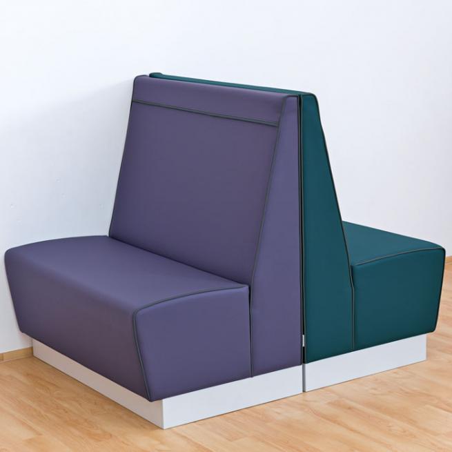Cool und stylish wie in einem American Diner. Die Bank Lehners überzeugt durch ergonomischen Sitzkomfort und ihr tolles Design. Cafeteria, Aufenthaltsraum, Foyer, … werden damit zum beliebten Treffpunkt. Besonders schulalltagstauglich ist die schicke Bank aufgrund ihrer stabilen Konstruktionsweise, des schwer entflammbaren Kunstlederbezugs und der vielseitigen Stellmöglichkeiten. Sie kann frei, als Raumteiler oder Rücken an Rücken gestellt werden. Hier sitzt und unterhält man sich gern, denn die hohe Rückenlehne sorgt für Wohlfühl- und Privatsphäre. Mit der Kontrastnaht (Farbe Iron) und dem Sockel ist die Bank ein echter Hingucker im edlen Look. Den Sockel schrauben Sie ganz leicht, sogar ohne Werkzeug, einfach an.