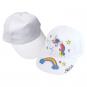Die weiße Baseball-Cap eignet sich ideal zum kreativen Malen mit Stoffmalfarben. Bei der Gestaltung sind den Kindern keine Grenzen gesetzt. Entwerfen Sie mit den Kindern erste Designs und setzten Sie diese später zusammen in die Tat um. Die Kappe lässt sich am Hinterkopf dank einer Kunststoffschnalle verstellen (7 Größenregler).