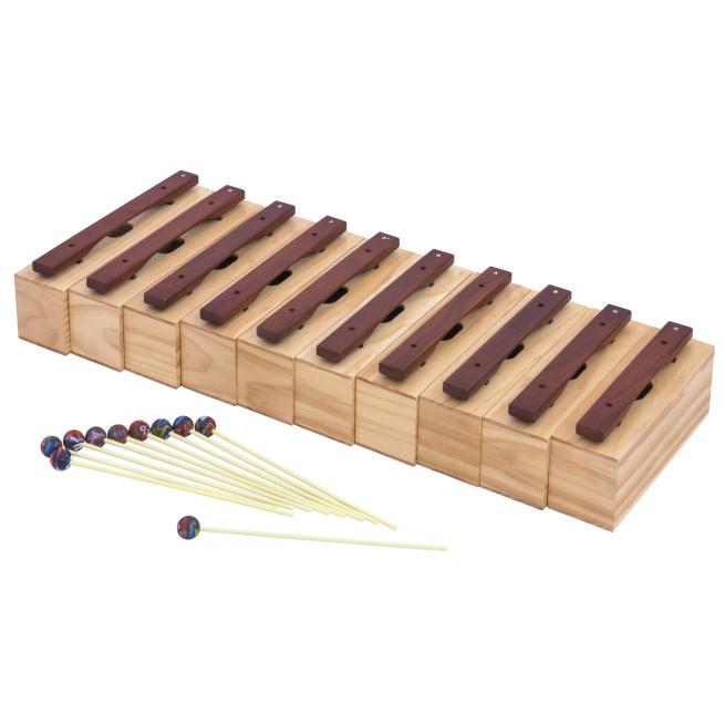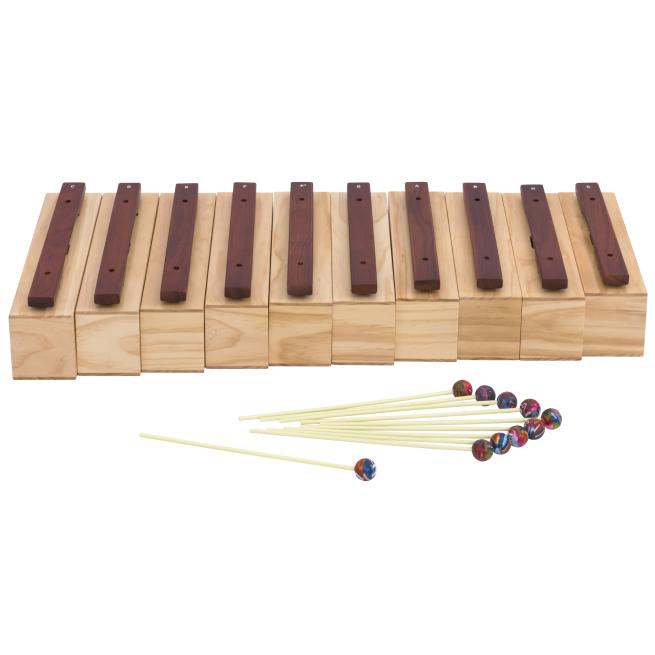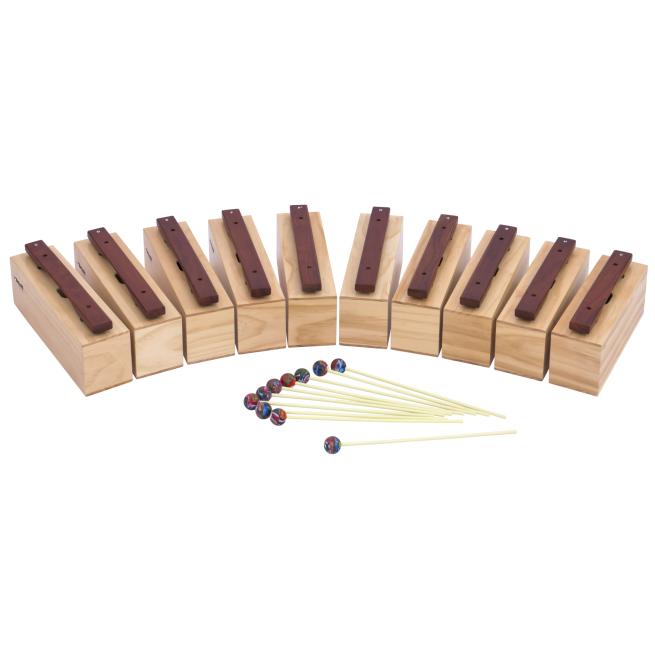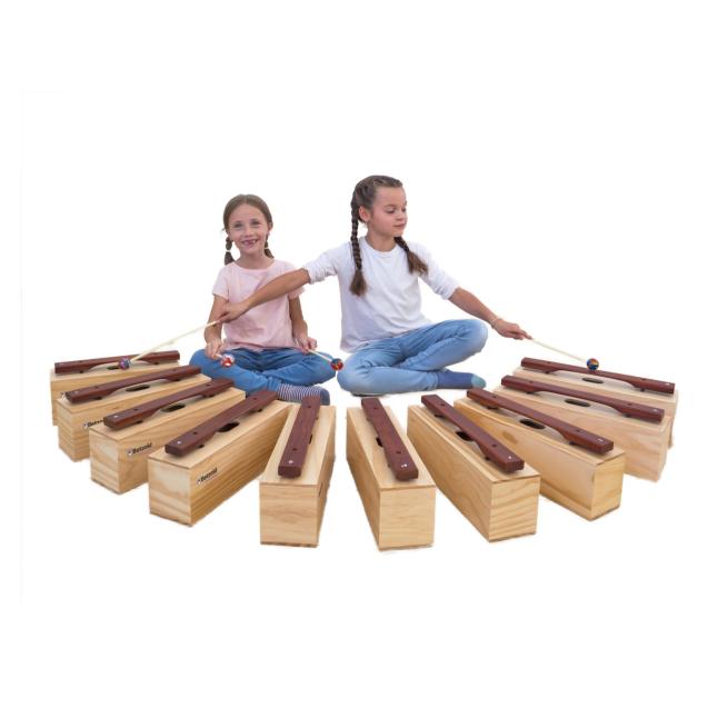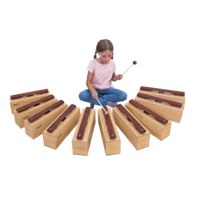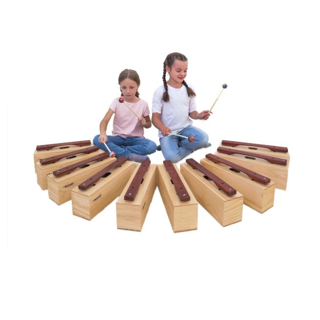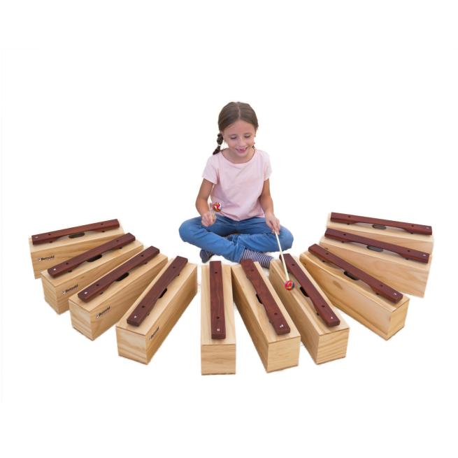 So können mehrere Kinder gleichzeitig musizieren. Beste Klangeigenschaften und ein überzeugendes Preis-Leistungs-Verhältnis zeichnen diese Klangbausteine aus. Ihre Resonanzkörper sind aus Kiefernholz gefertigt und mit den jeweiligen Klangstäben aus edlem Pau Rosa-Holz erzeugen sie warme und wohlklingende Töne, sobald sie mit den beiliegenden Schlägeln zum Klingen gebracht werden. Als klassisches Orff-Instrument werden die Klangbausteine besonders in der musikalischen Früherziehung eingesetzt.
