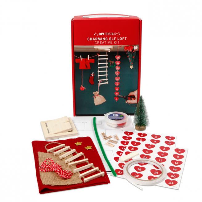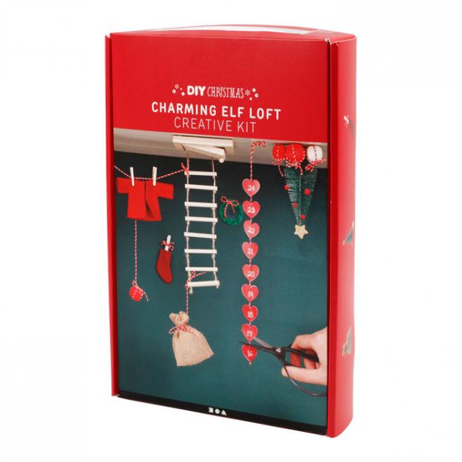 Aus dem Set gestalten Sie im Nu einen ganz besonderen Adventskalender. Bemalen Sie z. B. die Holzteile. Platzieren Sie die kleine Tür samt Strickleiter entweder als Eingangstür für den Wichtel an einer Treppenstufe oder als Dachluke z. B. unter einem Regalboden.