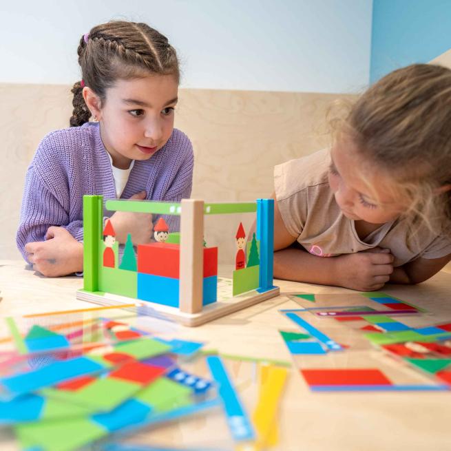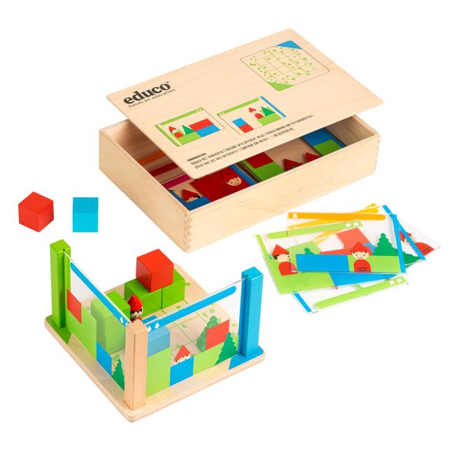 Taucht ein in die faszinierende Welt des räumlichen Denkens. Ziel dieses fesselnden Lernspiels ist es, das angezeigte Bauwerk so zu bauen, dass alle Seitenansichten stimmen, wenn man durch die durchsichtigen Karten hindurchsieht. Der steigende Schwierigkeitsgrad ermöglicht den Kindern die schrittweise Weiterentwicklung ihrer räumlichen Orientierung.