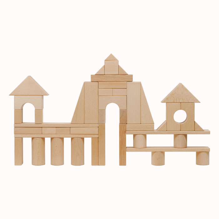 Alles, was Kinder zum Bauen brauchen: verschiedene Bauklötze aus massiver Buche. Sie sind absolut gleichmäßig und präzise gearbeitet. Die Fröbel-Bausteine haben das Kindergarten-Grundmaß von 5 cm.