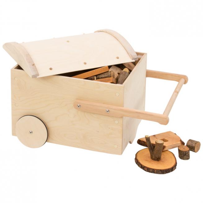 Baumklötze aus Holz 144 Baumklötze in fahrbarer Holzkiste mit 2 Rädern