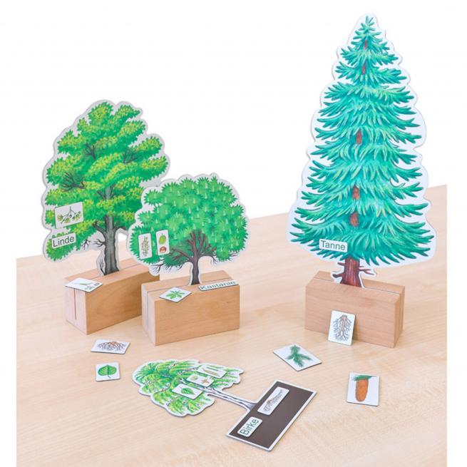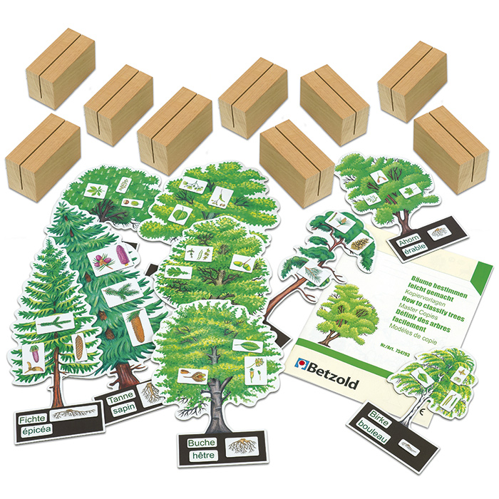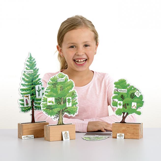 Mit diesem Lernmaterial bestimmen Ihre Schüler jeden Baum – und das sogar vom Klassenzimmer aus. Die maßstabsgetreuen, stabilen Baummodelle helfen dabei. Die beiliegenden Magnettäfelchen haften perfekt auf den Baumoberflächen. Die Kopiervorlagen sind inklusive und auch für den bilingualen Unterricht (Englisch oder Französisch) bestens geeignet.