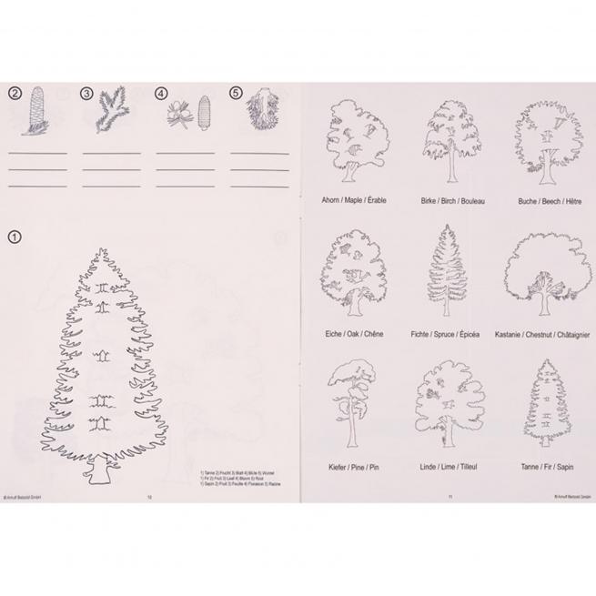 9 Bäume: Ahorn, Birke, Buche, Eiche, Fichte, Kastanie, Kiefer, Linde, Tanne
