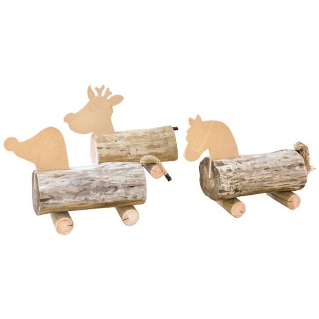 Zaubern Sie Ihren Kindern mit Pferd, Rentier und Hund einen eigenen kleinen Zoo in den Außenbereich. Optimal als Sitzgelegenheit oder auch für witzige Rollenspiele. Die Kinder passen zu zweit auf die Tiere.