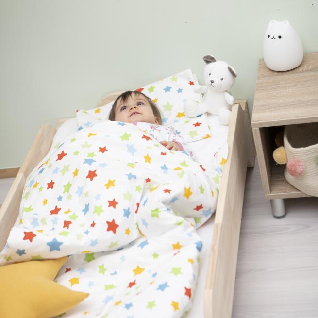 Ob Sterne oder gelbe Streifen mit maritimen Motiven – in der weichen Baumwoll-Garnitur (100 % Baumwolle) träumen Ihre Kinder wunderbar während des Mittagsschlafs. Dank Hotelverschluss sind Kissen- und Deckenbezug im Handumdrehen bezogen. Stoff umschlagen, fertig.