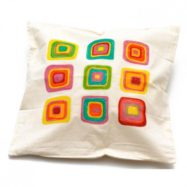 Die Baumwoll-Kissenhüllen mit Reißverschluss eignen sich zum Bemalen und Bedrucken mit Stoffmalfarbe.