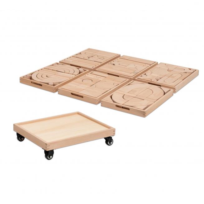 Die mobilen Bausteinwagen mit den zahlreichen Bausteinen in unterschiedlichen Formen in je 6 Fächern sind ein Must-have für die Bauecke. Das massive Buchenholz ist besonders strapazierfähig. Dank der 4 leichtgängigen Rollen transportieren Sie den jeweiligen Wagen einfach von Raum zu Raum. Die Wagen bieten kreatives Beschäftigungspotenzial für die ganze Gruppe.