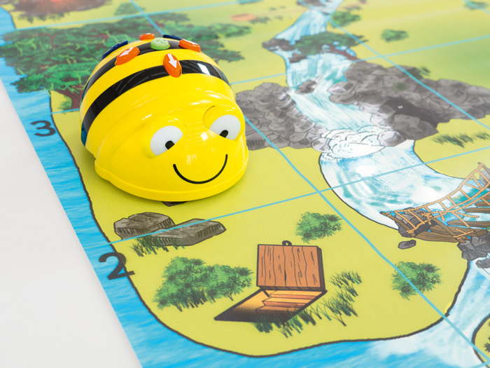 Los geht's zur Schatzsuche – wer findet den richtigen oder kürzesten Weg? Erfinden Sie immer neue Wege und Geschichten. So macht das Programmieren noch mehr Spaß. Auf dieser Bodenmatte mit 25 Feldern fährt der Bee-Bot oder Blue-Bot passgenau, denn die Feldgröße (15 x 15 cm) entspricht dem Vortrieb eines Bot-Schrittes. Die Matte ist aus PVC und leicht zu reinigen.