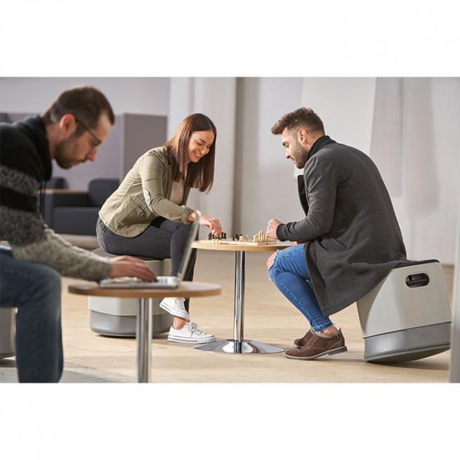 Optimale Ergänzung der BeSoft Serie: der höhenverstellbare, drehbare Hocker. Wer auf dem weichen Polsterkissen Platz nimmt, sitzt dank der gebogenen Standfläche und der dadurch entstehenden dynamischen Schwingbewegungen ergonomisch korrekt. Mithilfe der Sicherheitsgasfeder in der Grifföffnung ist der Hocker einfach höhenverstellbar. Mit Grifföffnung zum leichten Transport und wählbarer Gehäusefarbe.