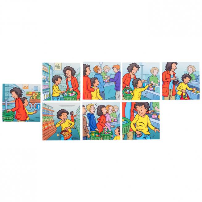 9 farbige Bildergeschichten mit je 8 Einzelkarten