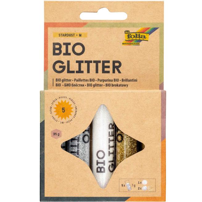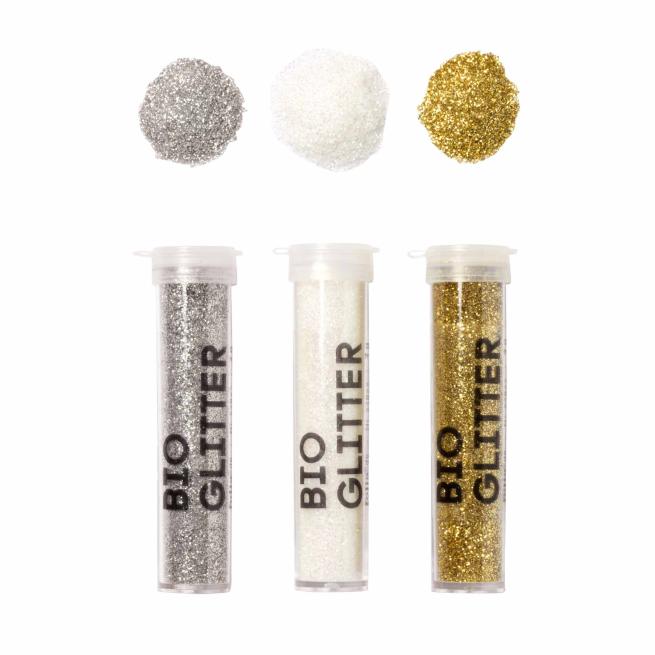 Mit dem Bio-Glitter-Mix verwandeln Kinder in Kindergarten und Schule ihre Bastelprojekte in funkelnde Hingucker. Ob auf Glas, Holz, Keramik oder Papier – dank durchdachtem Streuaufsatz dosieren die Kinder den Glitter leicht und gleichmäßig. So entstehen z. B. schicke Windlichter, prächtige Geschenktüten, glänzende Karten und vieles mehr.