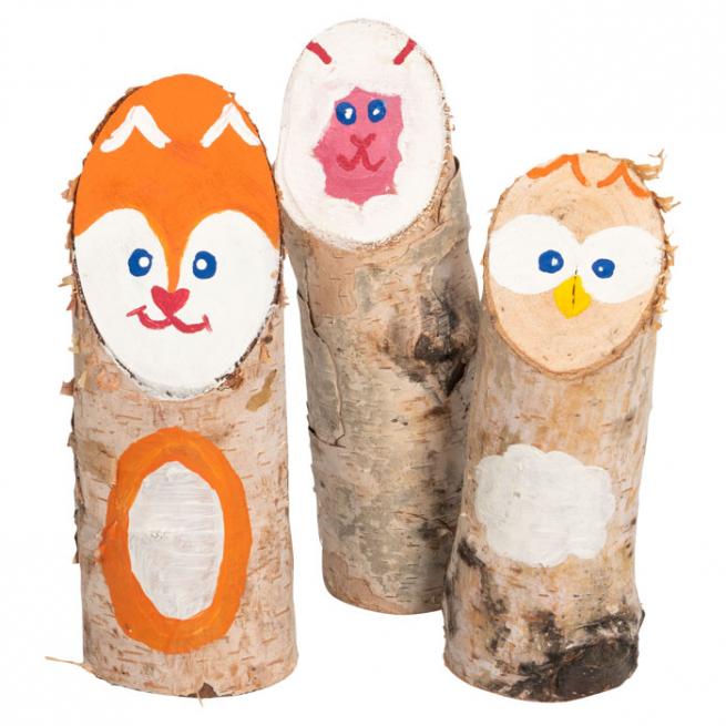 Ob als Igel zwischen Laubblättern, als Nikolaus vor der Eingangstür oder als Schutzengelchen zum Geburtstag - die vorgesägten Baumstämmchen aus Birkenholz werden mit etwas Farbe und weiteren Materialien zu hübschen Dekorationen.