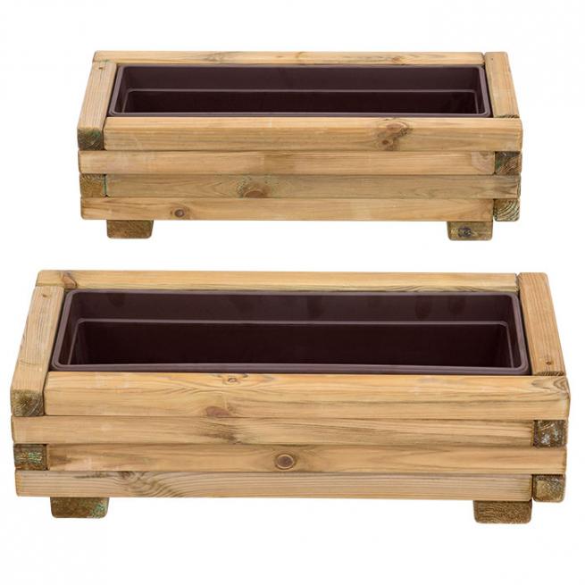 Mit Kunststoff-Einsatz zum Schutz des Holzes. Die Höhe (ca. 20 cm) und die Tiefe (ca. 26 cm) ist bei allen Modellen gleich.