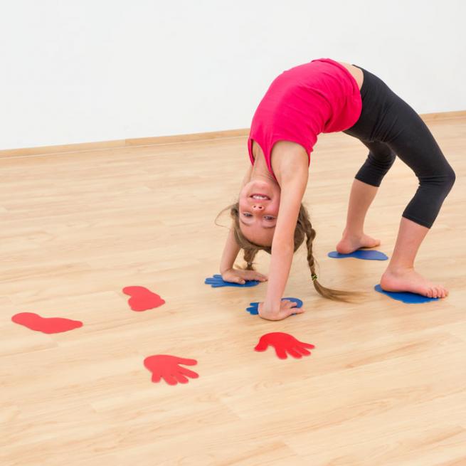 Die rutschfesten Markierungssymbole eignen sich hervorragend, um mit den unterschiedlichen Formen und Farben, verschiedene Laufwege (Orientierungslauf) auf dem Boden sichtbar zu machen.