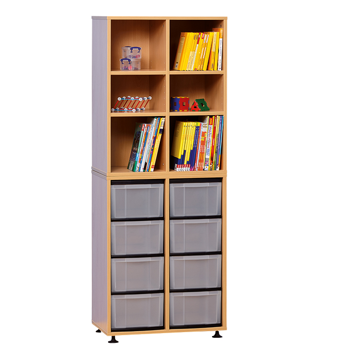 Ob als Klassenregal mit Eigentumsfächern für jeden Schüler, Bücherbord für die Schülerbibliothek oder für alle Materialien im Lehrerzimmer, diese Regale sorgen für Ordnung. Schübe mit Auszugssperre, durch einfaches Zusammendrücken herausnehmbar. Die Regalbretter sind in der Höhe verstellbar.