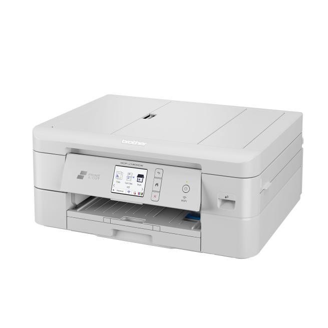 Entdecken Sie den Brother DCP-J1800DW-3-in-1-Tinten-Multifunktionsdrucker, mit dem Sie drucken, kopieren, scannen und sogar schneiden. Mit bis zu 1.000 Seiten monatlichem Druckvolumen, praktischem Auto-Duplex und der grandiosen Druckauflösung von bis zu 6.000 x 1.200 dpi (beim Drucken einer Datei von Ihrem Computer oder Mobilgerät aus) ist der DCP-J1800DW die ideale Wahl zum effizienten Druck anspruchsvoller Vorlagen und einzigartiger Materialien. Verwenden Sie ihn zum Drucken von besonderen Dokumenten (wie Urkunden, Flyern oder Einladungskarten), hochauflösenden Bildern und Grafiken oder digital erstellten Kunstprojekten. Sie erreichen stets exzellente Ergebnisse – sowohl in Schwarz-Weiß als auch in Farbe. Dank seiner kompakten Maße von nur ca. 40 x 34,3 x 17,2 cm und gerade 8,3 kg Gewicht findet der DCP-J1800DW dabei flexibel und nahezu überall einen Platz – ob im Lehrerzimmer, Schulsekretariat oder Ihrem heimischen Arbeitszimmer.