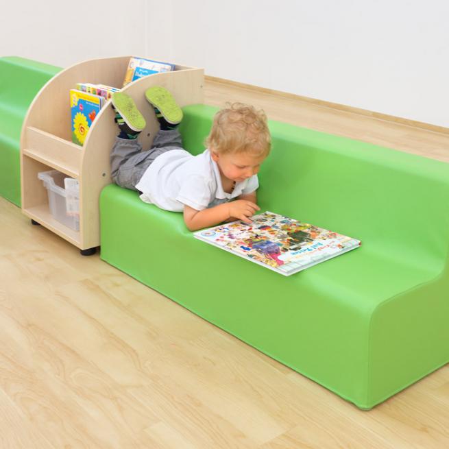 Egal ob frei im Raum oder an der Wand stehend, diese Bücherbox bietet selbst für großformatige Bücher viel Platz. Hier fällt es schon den Kleinen leicht, sich ein Buch zu entnehmen und wieder wegzuräumen. Mit zusätzlichem Fach für Spiele o. Ä.