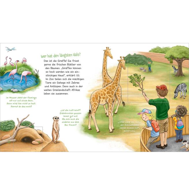 Als Mia beobachtet, wie einfach und selbstverständlich ihr großer Bruder Theo aufs Klo geht, beschließt sie, dass ihre Windelzeit nun vorbei ist. Mia bekommt einen Toilettenaufsatz. Zunächst ist die Sache mit dem aufs Klo gehen doch schwieriger als angenommen. Doch mit ein wenig Übung gelingen sämtliche Geschäfte und dann schläft Mia sogar auch ihre erste Nacht ohne Windel und ist mächtig stolz auf ihre neue Selbstständigkeit.Im Zoo ist was los! (WAS IST WAS – Meine Welt Band 8)
